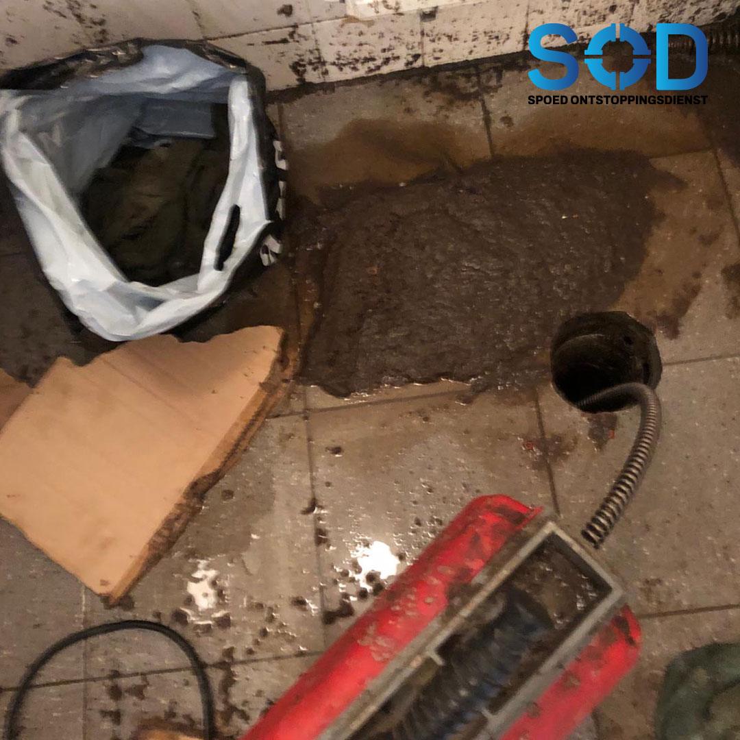 De afvoerleiding is vervolgens op vakkundige wijze vrij gemaakt van alle vuil en andere resten. Toilet gemonteerd en ruimte schoon gemaakt en gedesinfecteerd.